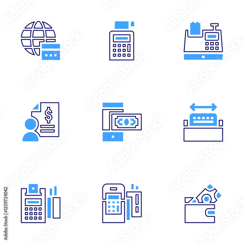 Payment icon set. Bold line style. Duotone colors. Editable stroke. payment, online payment, phone, dataphone, cash register, credit card, wallet