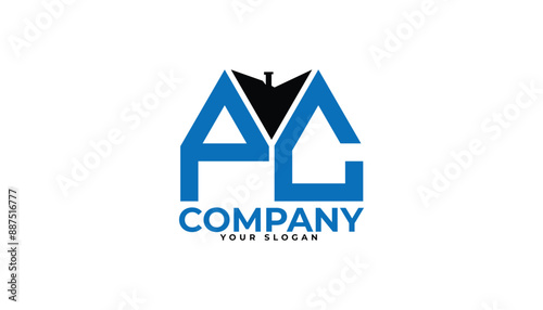 PC letter creative real estate vector logo design.