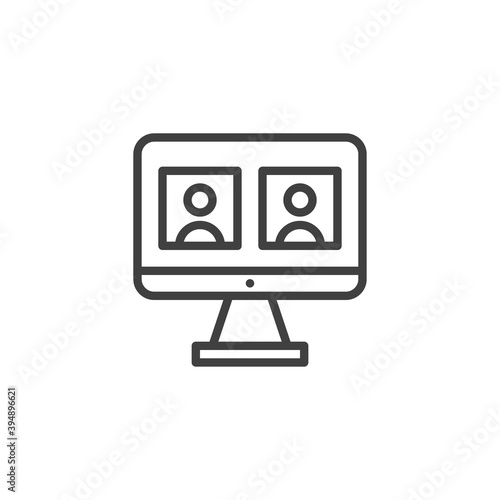 PC monitor video conference line icon. linear style sign for mobile concept and web design. Work from home outline vector icon. Symbol, logo illustration. Vector graphics