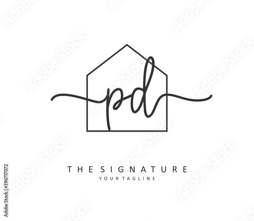 PD Initial letter handwriting and signature logo. A concept handwriting initial logo with template element.
