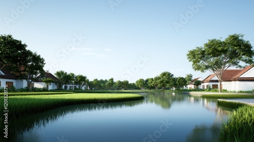 Peaceful Village by the Lake