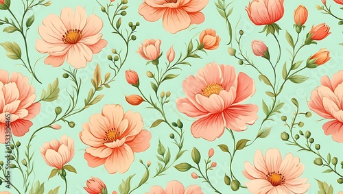Peach Blossom Floral Pattern Seamless Watercolor Design for Textile and Wallpaper