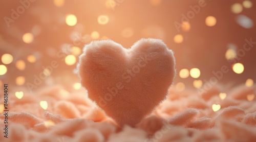 Peach Fuzz Romance with Heart-Shaped Bokeh .