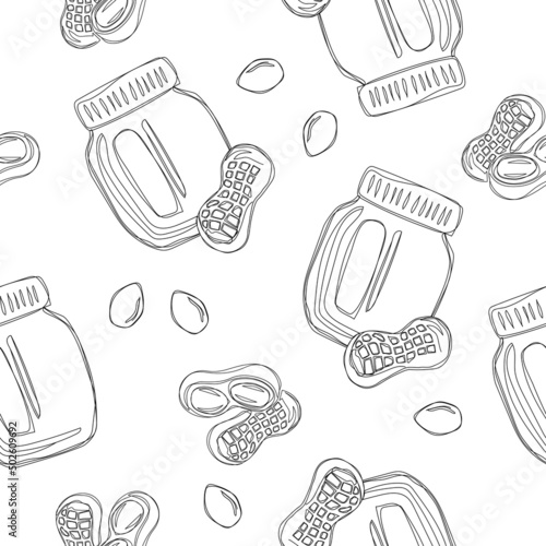 Peanuts butter seamless pattern. Hand drawn sketches illustration on white background.
