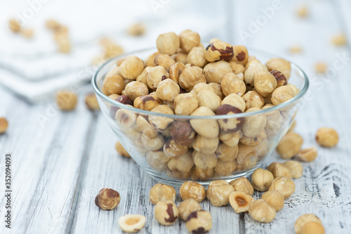 Peeled Hazelnuts (close up shot; selective focus)