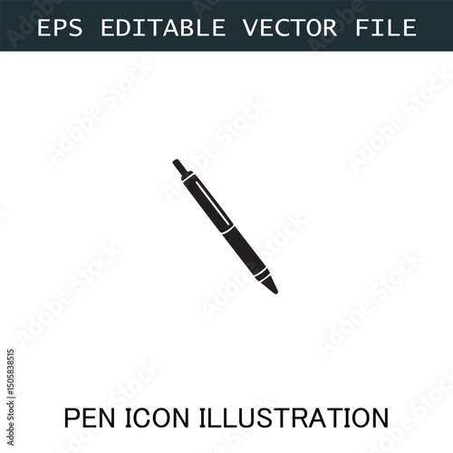 Pen Icon Logo Vector Image in Black and White for Stationery Branding and Graphic Design