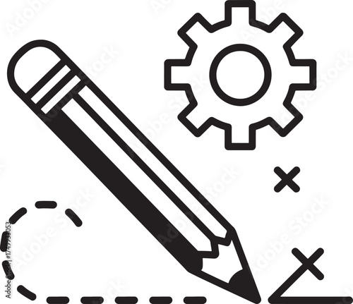 Pencil Drawing a Gear and Path with X Marks Indicating a Plan or Strategy Keywords: pencil, drawing