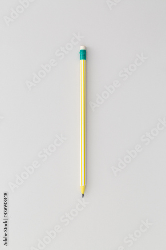 Pencil on grеy background. Top view. Flat lay. Back to school concept.