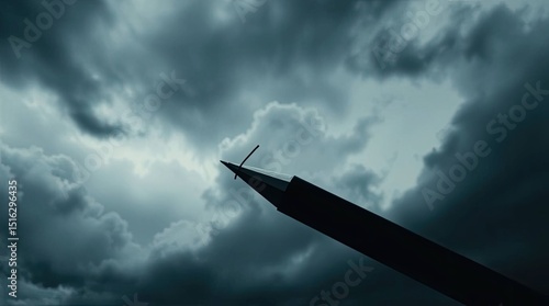 Pencil point against a backdrop of dramatic cloudy sky with a sense of impending weather