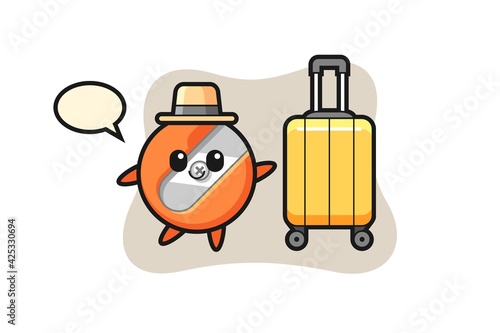pencil sharpener cartoon illustration with luggage on vacation