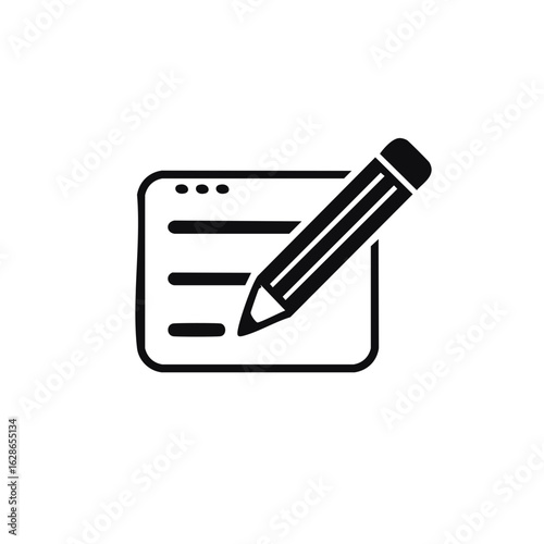 Pencil writing on document icon, concept of note taking, communication and learning.