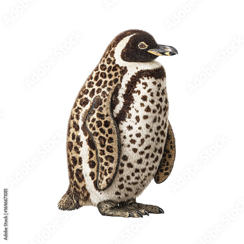 penguin with leopard print skin fur. hyperrealistic. isolated white background