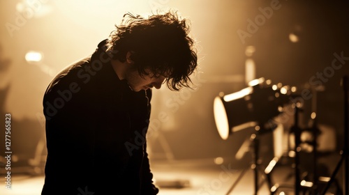 Pensive Young Man in Low Light with Artistic Shadow Effects