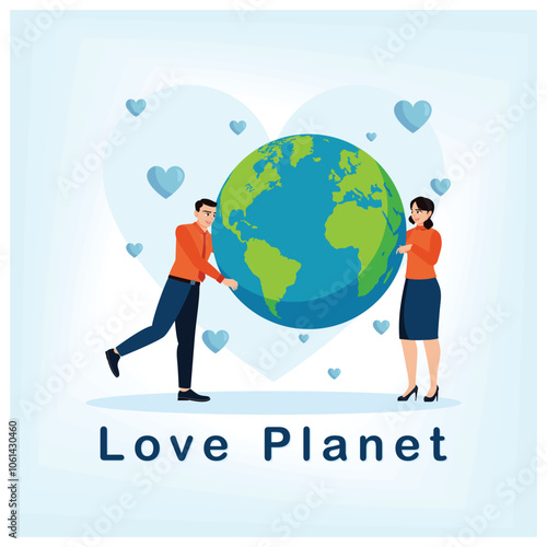 People holding a globe. People love and care about nature. Earth Day concept. Flat vector illustration.