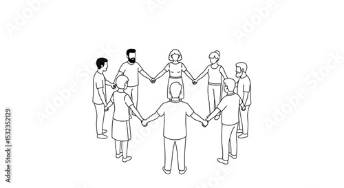 People holding hands standing in a circle unity concept
