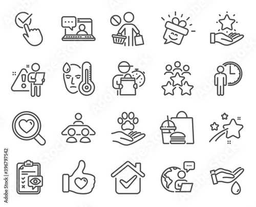 People icons set. Included icon as Business meeting, Friends chat, Wash hands signs. Eye checklist, Like hand, Smile symbols. Interview job, Waiting, Search love. Pets care, Checkbox. Vector