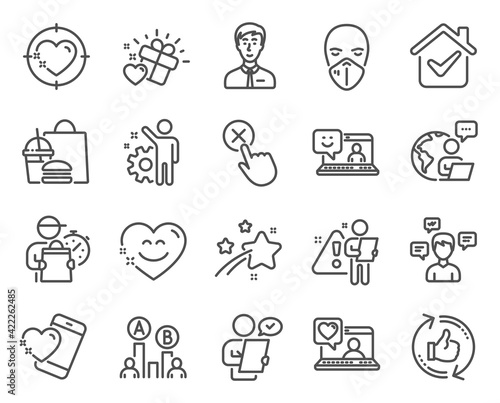 People icons set. Included icon as Heart target, Refresh like, Employee signs. Vector