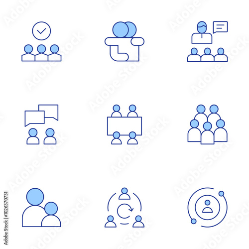 People icons set. Line Duotone style, editable stroke. boss, meeting, vote, user, mentoring, conversation, agile team, group, hug
