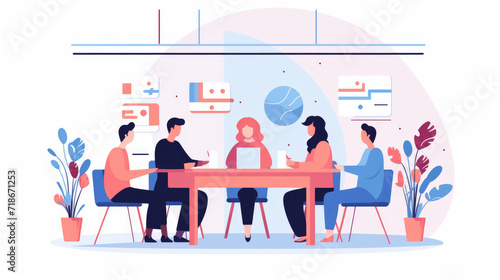 People in a business meeting or conference illustration on a white background