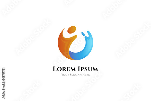 People logo and water splash. Simple, abstract, organic, young and cheerful 3d design style. suitable for water sports, health, freshness