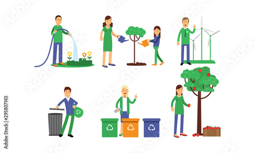 People Solving Various Environmental Problems Vector Illustration Set Isolated On White Background