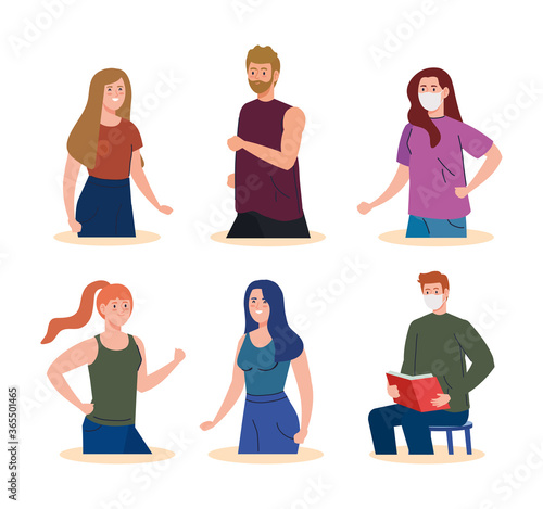 people wearing medical protective mask against covid 19 on white background vector illustration design