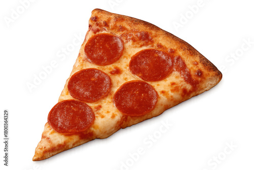 Pepperoni pizza slice, ready to eat, featuring melted cheese and spicy salami, a popular casual meal option. Transparent background