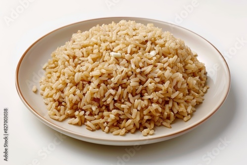 Perfectly Cooked Baked Brown Rice with Delicate Golden Crust in Ceramic Bowl