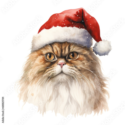 Persian Cat Wearing a Santa Hat. AI generated image