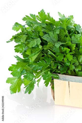 Persil frais dans caissette sur fond blanc