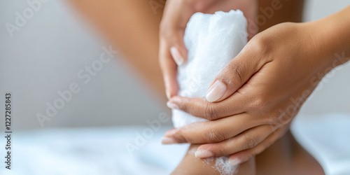 Person Applying White Lather to Leg
