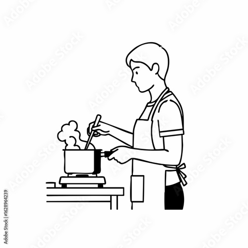 Person Cooking in the Kitchen with a Pot on the Stove for Cooking Blogs, Recipe Websites, Culinary Education, Home Cooking Content, and Kitchen Inspiration