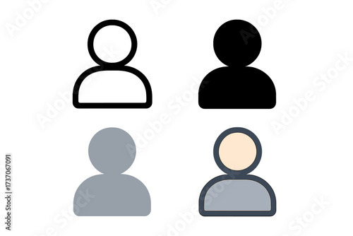 Person icon set in four different graphic styles. User avatar symbol collection for web and app design. Vector illustration for profile, member, and contact. Line, flat styles.