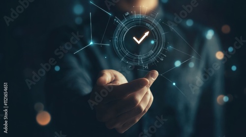 person presenting digital check mark icon