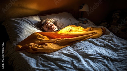 Person tossing and turning in bed, struggling with insomnia and restlessness. The scene captures the emotional turmoil and physical discomfort of a sleepless night.