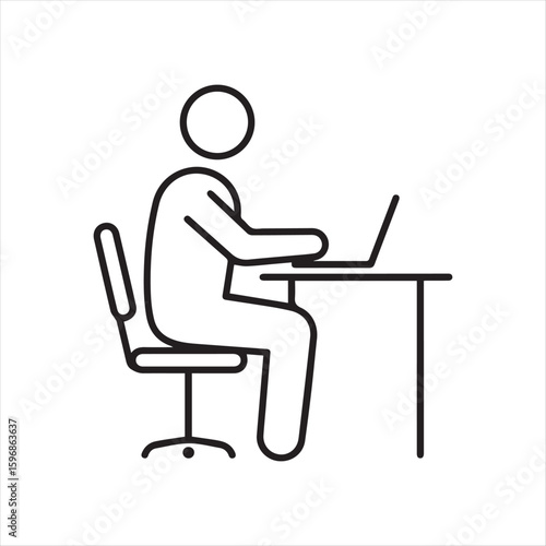 Person Using a Laptop at a Desk Icon Simple Line Art Style Office Worker Using Computer at Workplace Technology Theme