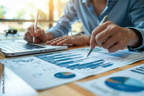 Person working laptop pen desk