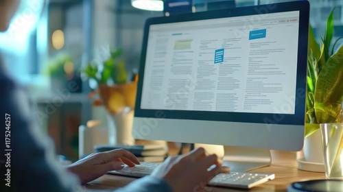 Person working on computer at desk.