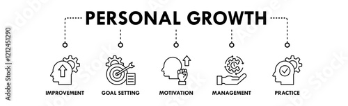 Personal Growth banner web icon illustration concept with icon of improvement, goal setting, motivation, management, and practice