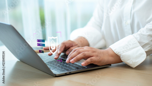 Personal user login cyber security concept, identification information security and encryption, secure Internet access, cybersecurity, secure access to user's personal information.