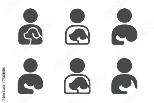 Pet-Friendly Icons Grid. Pet-Friendly Living. Set Logo of Pet Owner Icon: Filled silhouette, Minimal outline, Abstract geometric, Negative space, Stylized