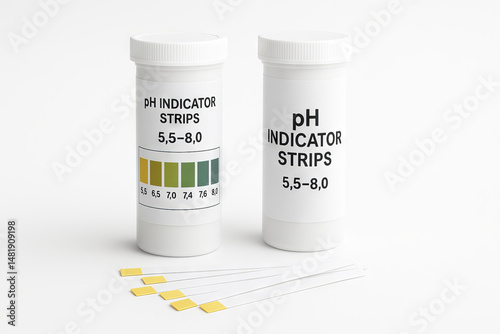 Ph indicator strips display with reference color chart on white background. concept of chemical testing, ph measurement, laboratory analysis, accurate results, simple design, white background