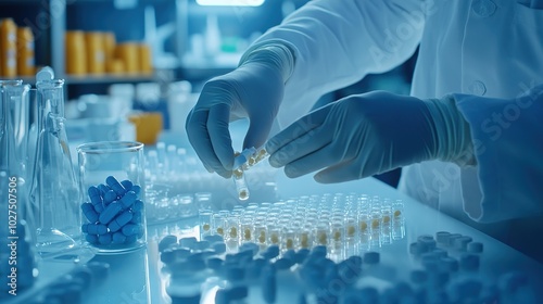 Pharmaceutical scientists developing next-gen medical devices in a high-tech laboratory