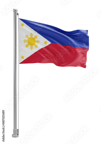 Philippine National Flag Waving on Pole Against Transparent Isolated Background