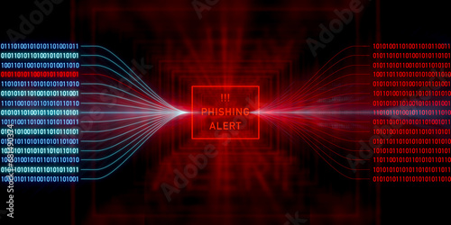 Phishing alert! Binary code, system message. Big data, cybercrime, system attack, threat, digital., computer crime.
