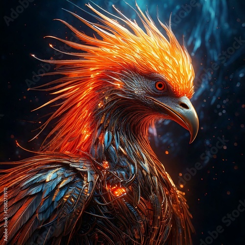 phoenix made of wires glow glowing isolated on black background digital illustration