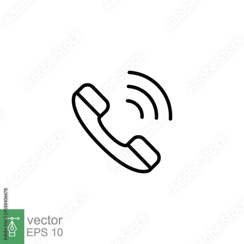 Phone call ringing icon. Telephone, incoming, receiver, communication concept. Simple outline style. Thin line symbol. Vector illustration isolated on white background. EPS 10.