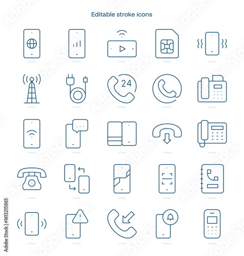 Phone stroke icon. Phone line icon set. editable stroke icon pack