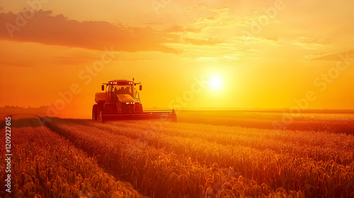 Photo - Golden Hour Harvest - Tractor in Wheat Field at Sunset