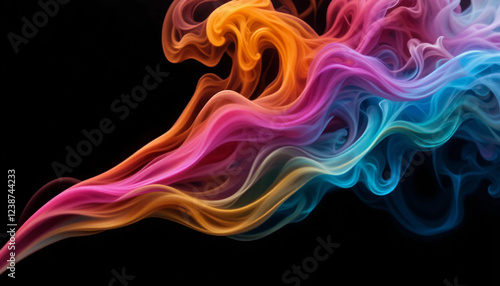 Photo Abstract smoke trails in vibrant colors against a black background.